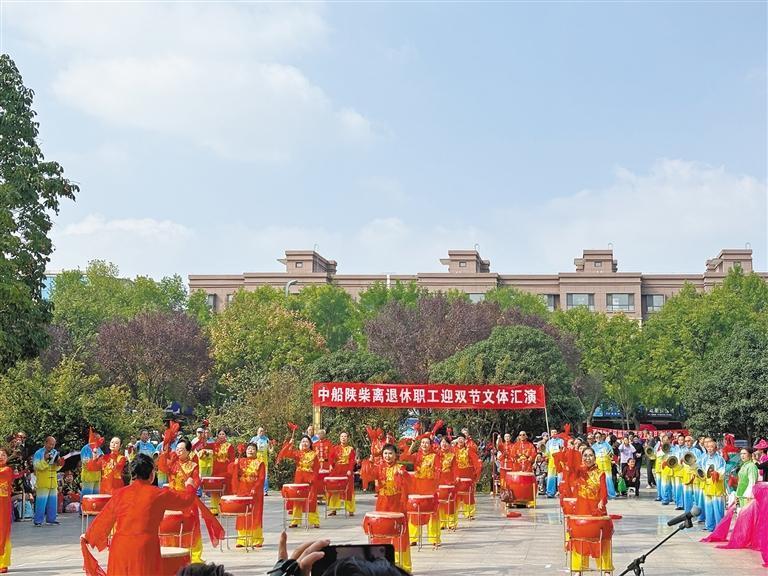 国庆期间,陕柴社区中心广场热闹非凡,陕柴退休老职工组成的锣鼓队精彩的表演引得在场居民纷纷拍手叫好;合唱队带来《我和我的祖国》,表达对祖国的热爱与对团圆的期盼;舞蹈队的阿姨们手持彩扇,伴着欢快的旋律跳起广场舞……现场掌声与喝彩声不断。
